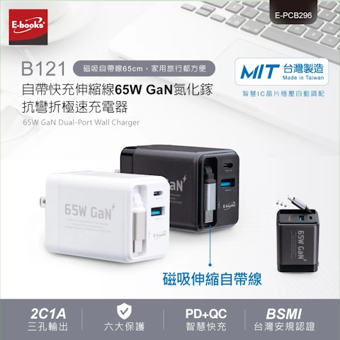 E-books B121 GaN氮化鎵抗彎折極速充電器 灰