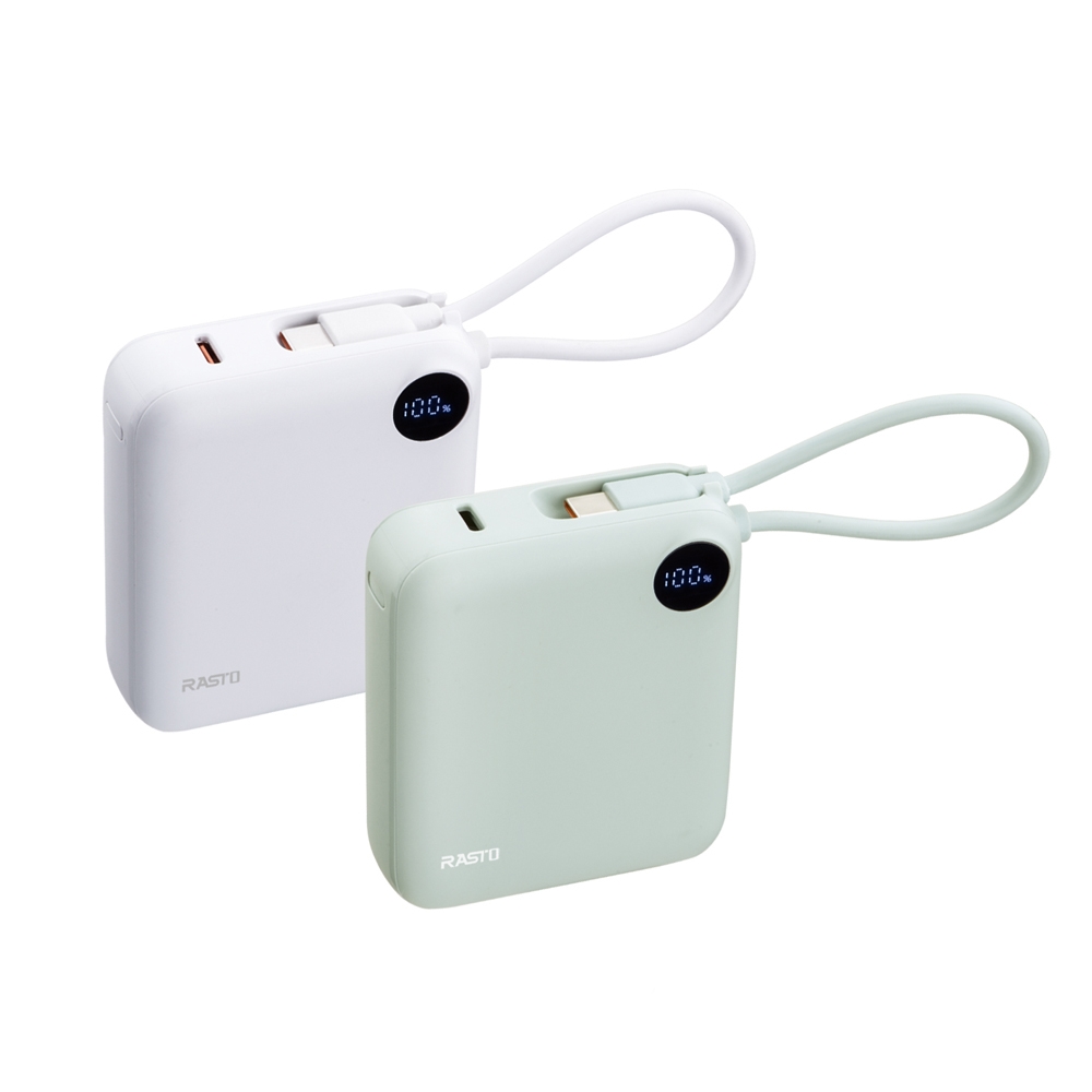 RB55 數顯自帶線二輸出雙向快充行動電源 白