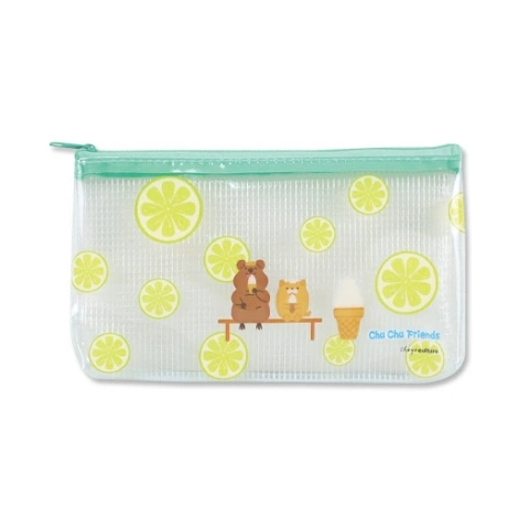珠友 PB-60680-02 透明網格扁形筆袋-一起吃冰