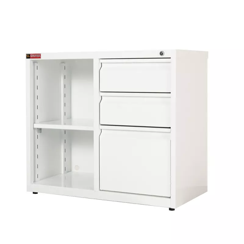 ●左側層板設計,靈活運用垂直空間,增加儲存容量,方便好拿取。 ●右側抽屜設計並結合鑰匙鎖機構,適合存放貴重工具或重要文件,安全有保障。 ●頂部兩側可裝設直徑6cm的無線充電盤:讓使用者能夠方便地在工作時為手機或其他電子設備充電。